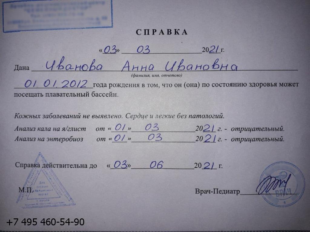 Как выглядит справка в бассейн для взрослого